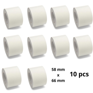 Zebra 58mm x 66mm termopaberist etiketid 25 mm südamikuga, tootja Dore, 10 tk